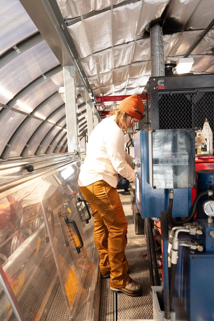 Say hello to the cold-weather version of our best-selling Britt Utility Work Pant. Built with all the features women love—11 functional pockets, rugged durability, generous stretch, and a women's-specific fit that moves with your body—these thermal work pants for women show up strong when temps drop. We partnered with the wizards at our fabric mill to engineer this pant from the fiber up, based on exactly what working women told us they need in a winter work pant. The result? HotSwap® Stretch Denim: a Dovetail-exclusive fabric that's 40% warmer than regular denim, with a brushed interior that's super soft, flexible, and never bulky. It looks and feels like your favorite denim on the outside, and works like a performance base layer on the inside. Bonus points for thermoregulation, so you stay warm without overheating when you're on the move or working indoors. And because it's made with recycled fibers, it works a little harder for the planet too.